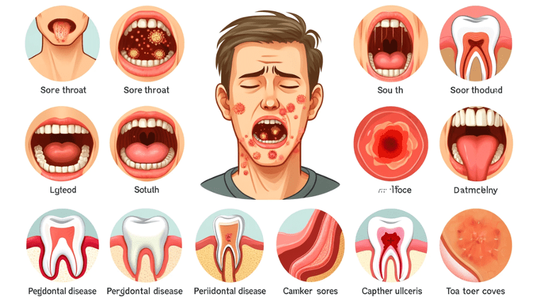 Ból gardła, drapanie, pieczenie w gardle (infekcje wirusowe i bakteryjne).